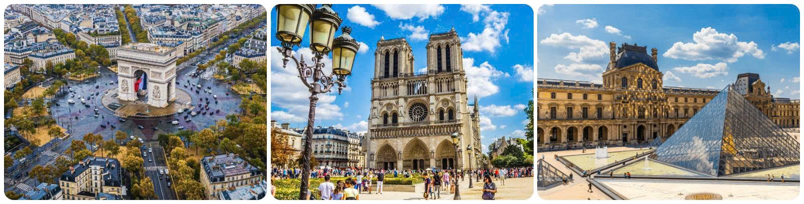 • Viện Bảo Tàng Louvre – Nơi trưng bày các tác phẩm nghệ thuật tuyệt tác nhất của thế giới: tượng nữ thần sắc đẹp Venus, bức tranh nàng Mona Lisa (tham quan bên ngoài).
