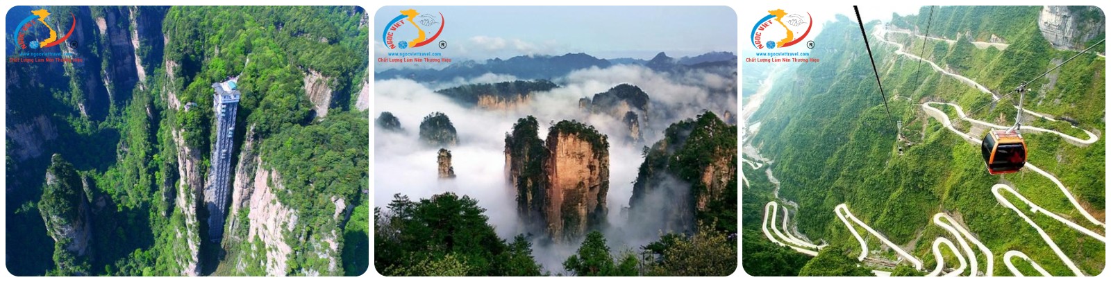 Quý khách đi thang máy “Bách Long Thiên” để lên đỉnh núi cao hơn 320m – đây là thang máy lên núi ngoài trời và hiếm có đầu tiên trên thế giới, cũng là hệ thống thang máy tham quan ngoài trời cao nhất thế giới và tải chở khách lớn nhất và nhanh nhất trên thế giới. (Bao gồm vé VIP khứ hồi thang máy).