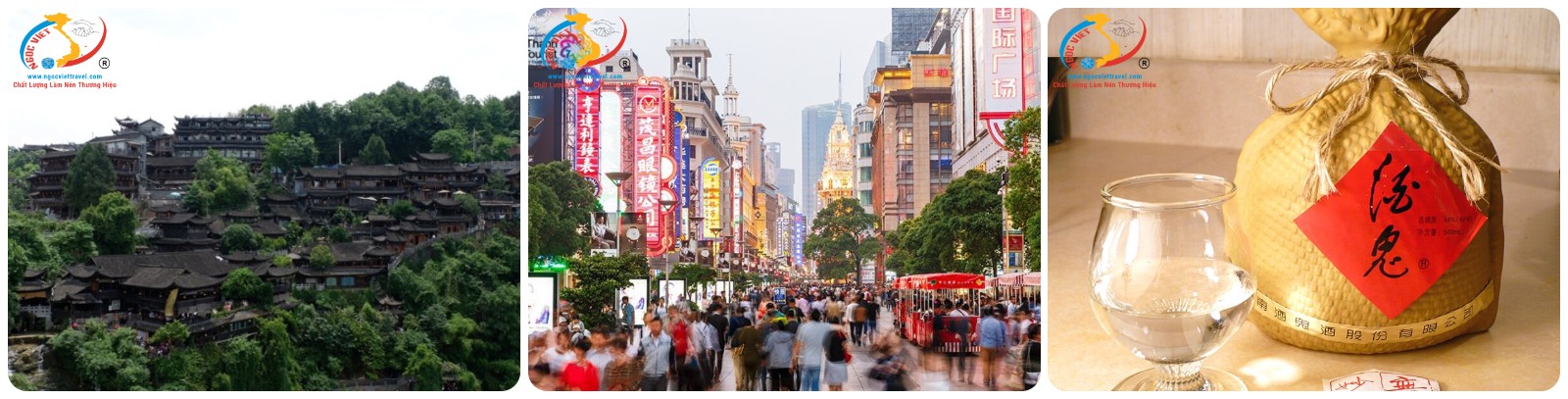 Chiều: Ăn trưa xong, có xe buýt đưa đón vào trung tâm “Thành Cổ Phượng Hoàng” là một thành cổ nằm ở phía tây tỉnh Hồ Nam, được nhà văn Tân Tây Lan Alley Rewi khen ngợi là nơi đẹp nhất Trung Quốc, với những ngôi nhà cổ áp sát vào núi và soi mình xuống dòng Đà Giang. Đặc biệt với những cây cầu nối hai bờ của dòng sông là nét đặc biệt của thị trấn này. Có đến cả chục cây cầu bắc qua con sông nhỏ, từ những cây cầu đá có tuổi đời bằng với khu thành cổ, cây cầu gỗ hình gấp khúc, cây cầu sắt cho đến cây cầu bê-tông lớn dành cho xe cơ giới qua lại. Với những thắng cảnh nổi tiếng (Hồng Kiều, Cầu Đá Nhảy, Thành lầu Đông Môn, tháp Vạn Danh)..
