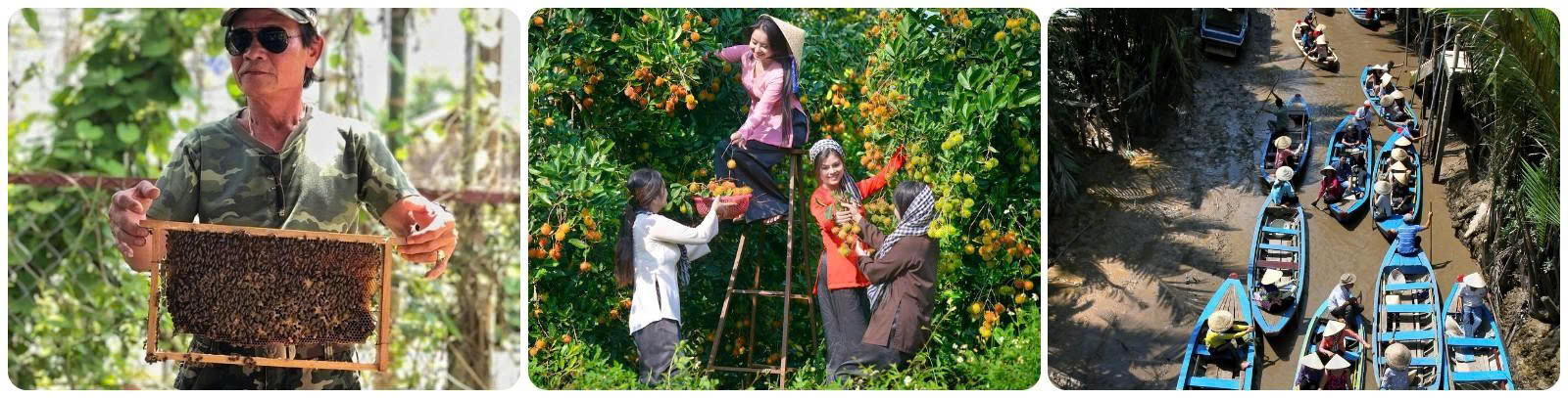 - Đến CỒN LÂN: Quý khách tham quan LÒ MẬT ONG, thưởng thức trà mật ong cùng với mứt trái cây. Sau đó hướng dẫn viên đưa đoàn dạo quanh làng, khám phá cuộc sống của người dân Miền Tây sông nước.
